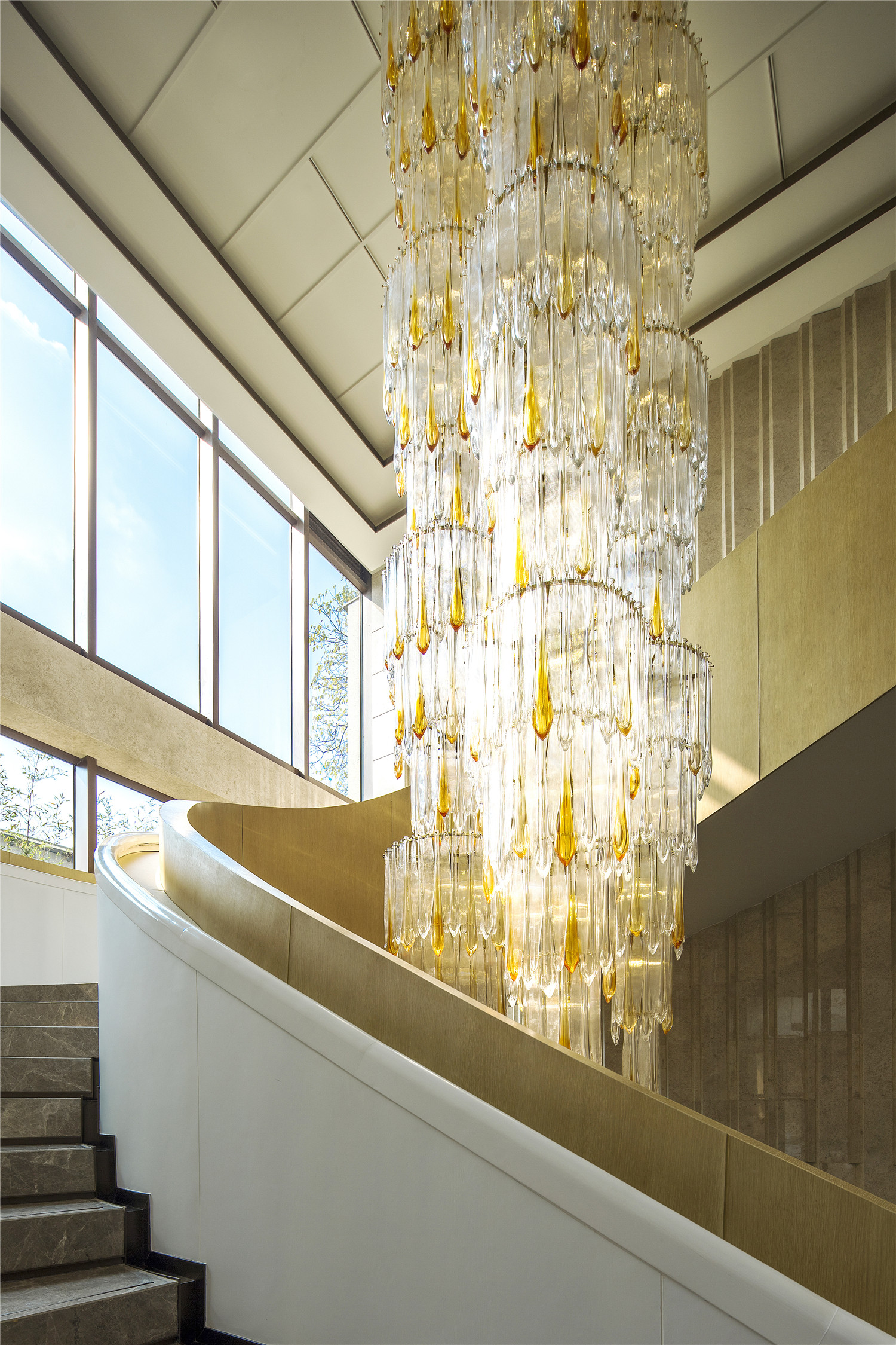 主要材料:玛瑙玉、亚马逊绿石材、古堡灰石材、橡木、拉丝青古铜
